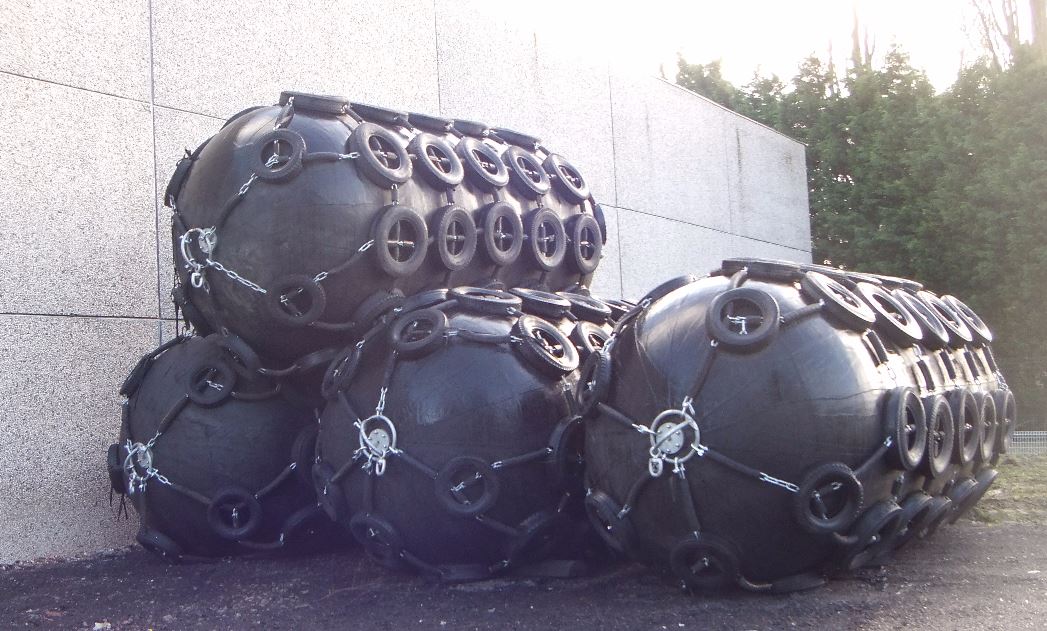 We are pleased to announce that due to popular demand Ocean 3 are now in a position to offer Pneumatic Fenders fitted with a chain and tyre net. For this purpose we have available in stock at our factory in Linselles, France, 4 Pcs Fenders Ø 2.5 m x 5.5m with chain and tyre net – see photo.