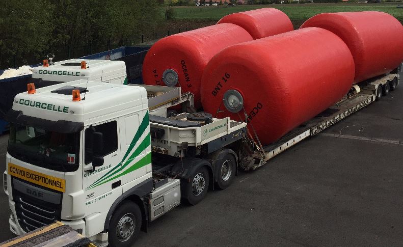 Departure from Linselles, OCEAN 3 Main Office North of France, of 1st series of 8 Fenders Ø 3,7 m x L 7,5 m to "Base Navale de Toulon", some other similar series will be manufactured soon for "Base Navale de Brest". These Fenders are due to equip quais to welcome new Multi- Mission Frigates (FREMM) and new Assault & Admiral Vessels (BPC) from French Navy.