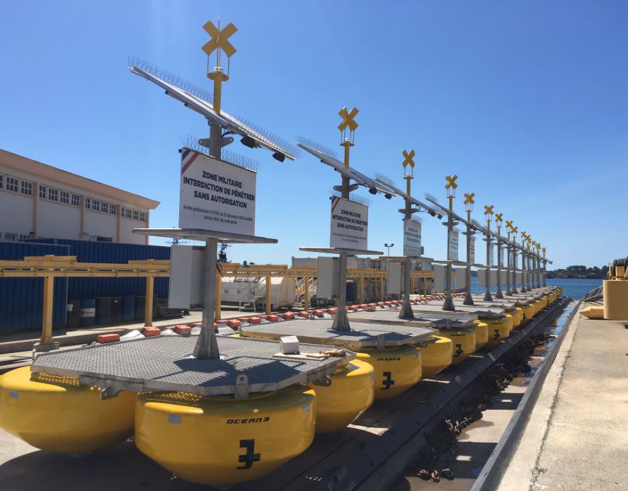 Réception de 20 Pontons de Signalisation Ocean 3 ce jour, à la Base Navale de Toulon, destinés à délimiter de jour comme de nuit la zone militaire de la Base Navale de Toulon. Certains Pontons seront utilisés pour interdire l'accès aux abords du Porte-Avions Charles de Gaulle en rade.
